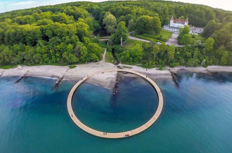 Den cirkelformede bro af træ løber fra strandkanten ved Varna og ud i Aarhus Bugten og er tilgængelig fra april/maj til oktober. Broen bliver stillet op i begyndelsen af april og taget ned igen i slutningen af oktober.