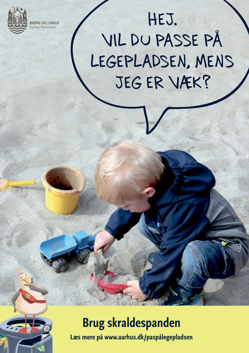 På de fleste legepladser og på skolens udearealer vil du også blive mødt af skilte, der opfordrer besøgende til at bruge skraldespanden.