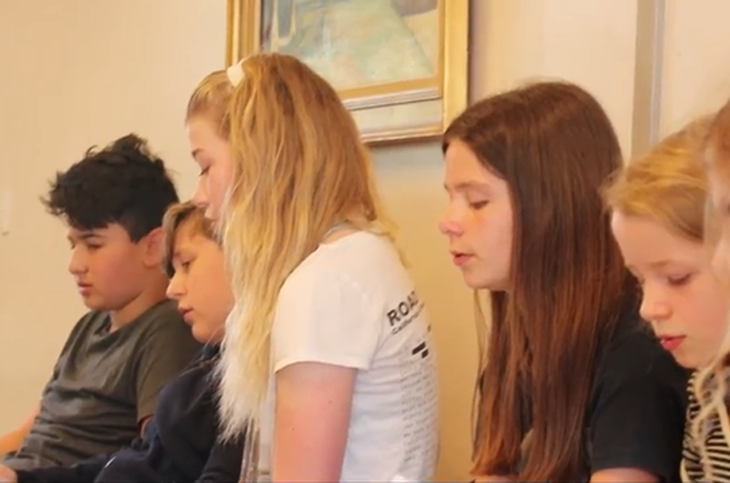En gang om måneden flytter eleverne fra 6.A på Beder Skole danskundervisningen ud på plejehjemmet Kristiansgården.