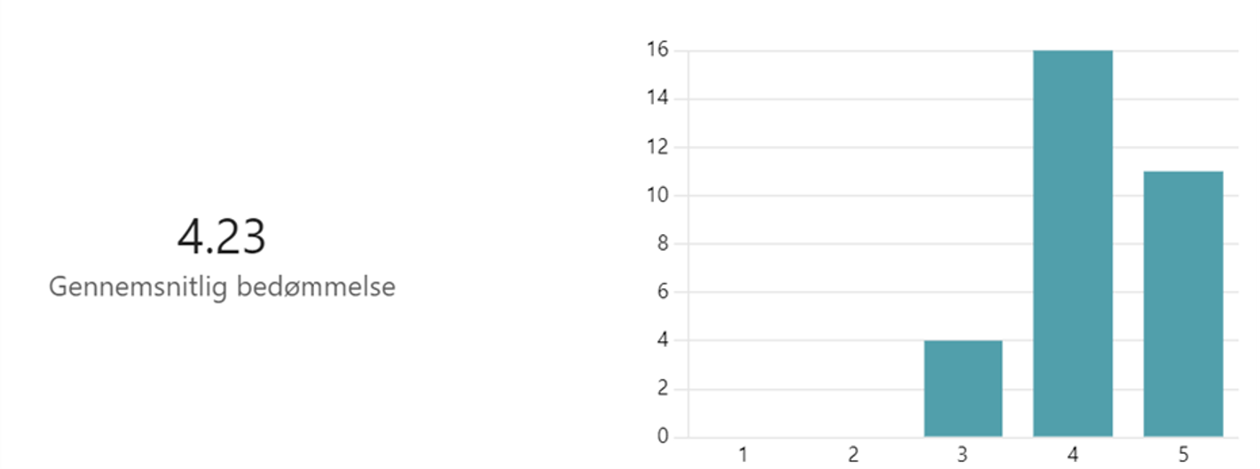 - ”Hvad synes du generelt om konceptet for sidste skoledag i afprøvningsperioden (de sidste tre år)?” er den gennemsnitlige bedømmelse 4,67 ud af 5.