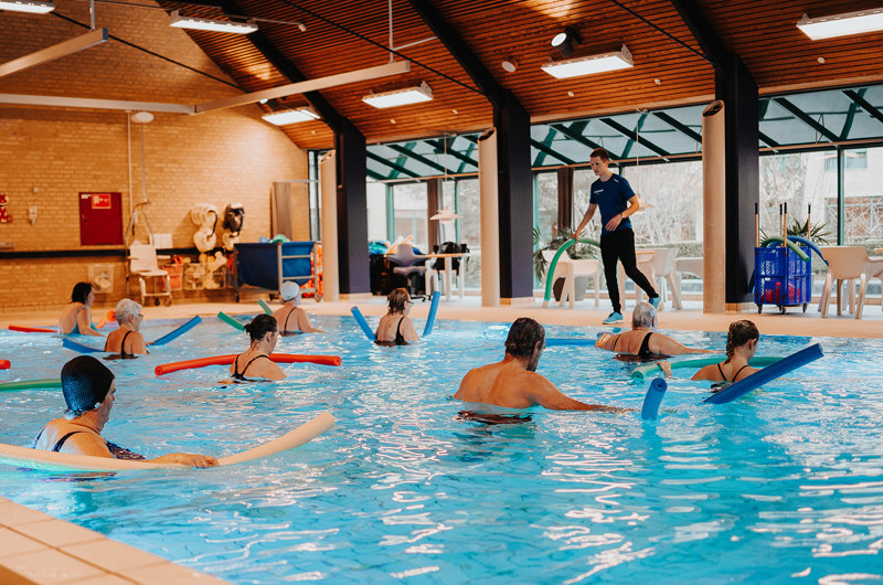 I Varmtvandsbassinet har vi forskellige specifikke hold, der henvender sig til dig, der har udfordringer i enten ryg-, knæ-, skulder- eller hofte.