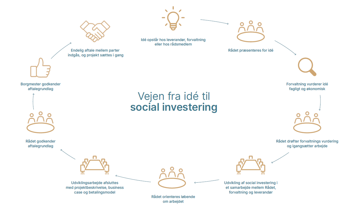 Nedenfor visualiseres sagsgangen fra idé til social investering.
