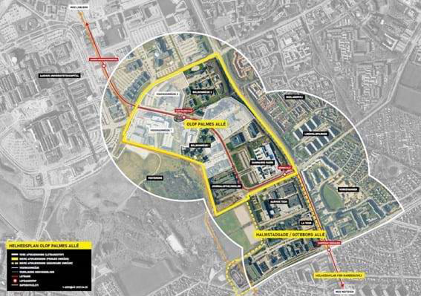 Med afsæt i det fremsendte visionsoplæg for en del af området omkring Olof Palmes Allé, er der igangsat en planproces for udarbejdelse af en helhedsplan for området.