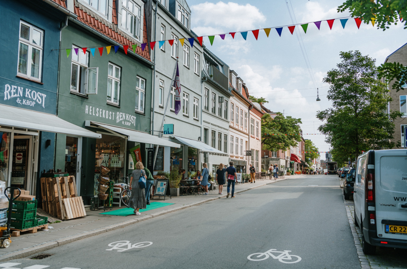 Jægergårdsgade har fra maj til oktober 2025 været sommergade. Det har betydet mere grønt, flere cykelparkeringspladser og mindre gennemkørende trafik.