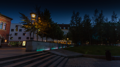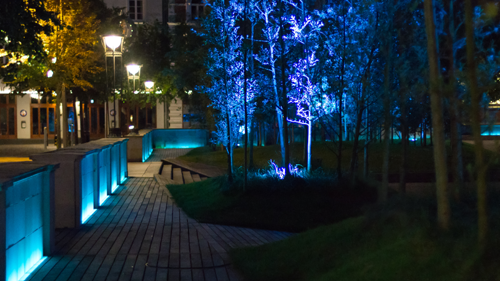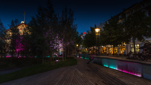 Belysningen kan ydermere kontrolleres via software og der kan vælges forskellige scenarier, alt efter behov og arrangementstype på pladsen.