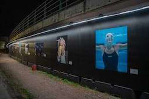 The open air-gallery is made up of a temporary wall structure, with photographic portraits, that are curated by Jyllandsposten, placed along it. The wall structure follows the building site, which is next to the headquarters of Jyllandsposten and creates a passageway that stretches all the way from Kalkværksvej and down to Sydhavnsgade. This is a long stretch of wall, which means there are a lot of portraits to delve into.