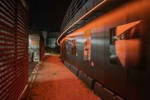 The portraits however wouldn't normally come to their own right outside of daylight hours, which is where the public luminary artwork "Sensible Horizon" comes into play and alltogether heightens the experience of this public space significantly. Responsible artist André Maia, has created the luminary artwork from spare fixtures in the department of light's reserves. These fixtures have the possibility to shine light in a full spectrum of colors, but as this artwork is supporting an experience of viewing the portraits on the wall structure, André has designed a control system that limits itself within a field of white tones. The system relies on custom software, that slowly modulates these tones of white, so a dynamic experience is attained.