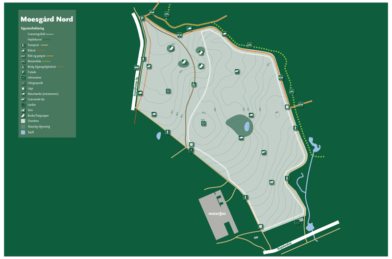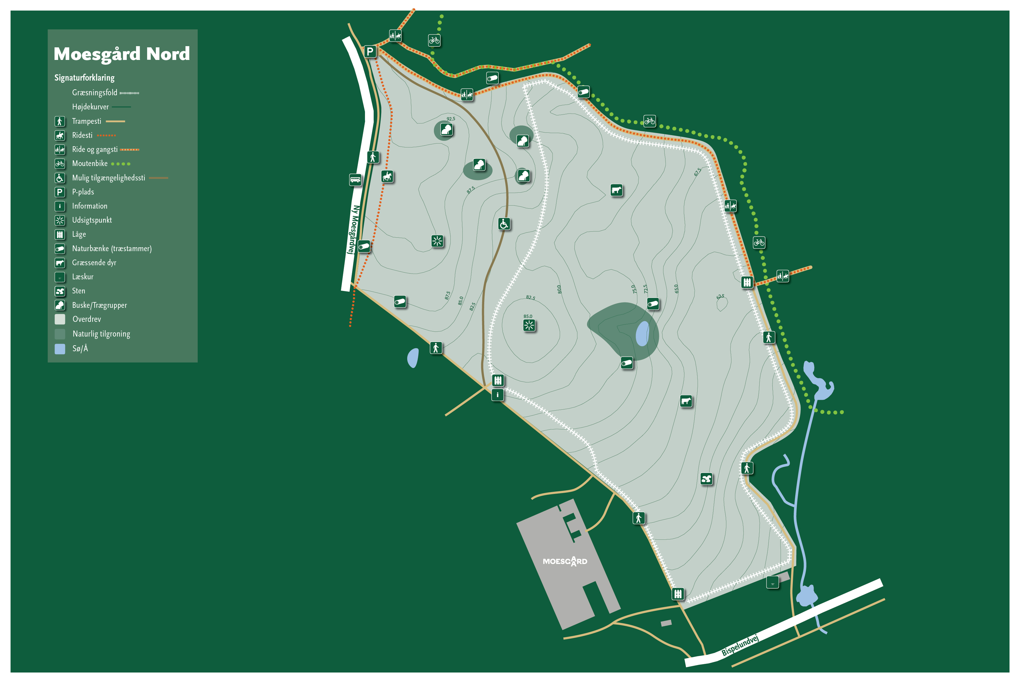 Planen for Moesgård Nord giver en status på, hvor vi i sommeren 2025 er nået til i arbejdet med udviklingen af ny natur. Den viser det, vi kalder det rekreative lag, som består af de beslutninger, vi har truffet om den rekreative anvendelse baseret på faglig viden og dialog med borgere og interessenter.