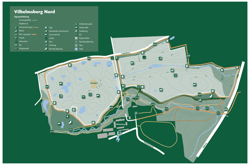 Planen for Vilhelmsborg Nord giver en status på, hvor vi i sommeren 2025 er nået til i arbejdet med udviklingen af ny natur. Den viser det, vi kalder det rekreative lag, som består af de beslutninger, vi har truffet om den rekreative anvendelse baseret på faglig viden og dialog med borgere og interessenter.