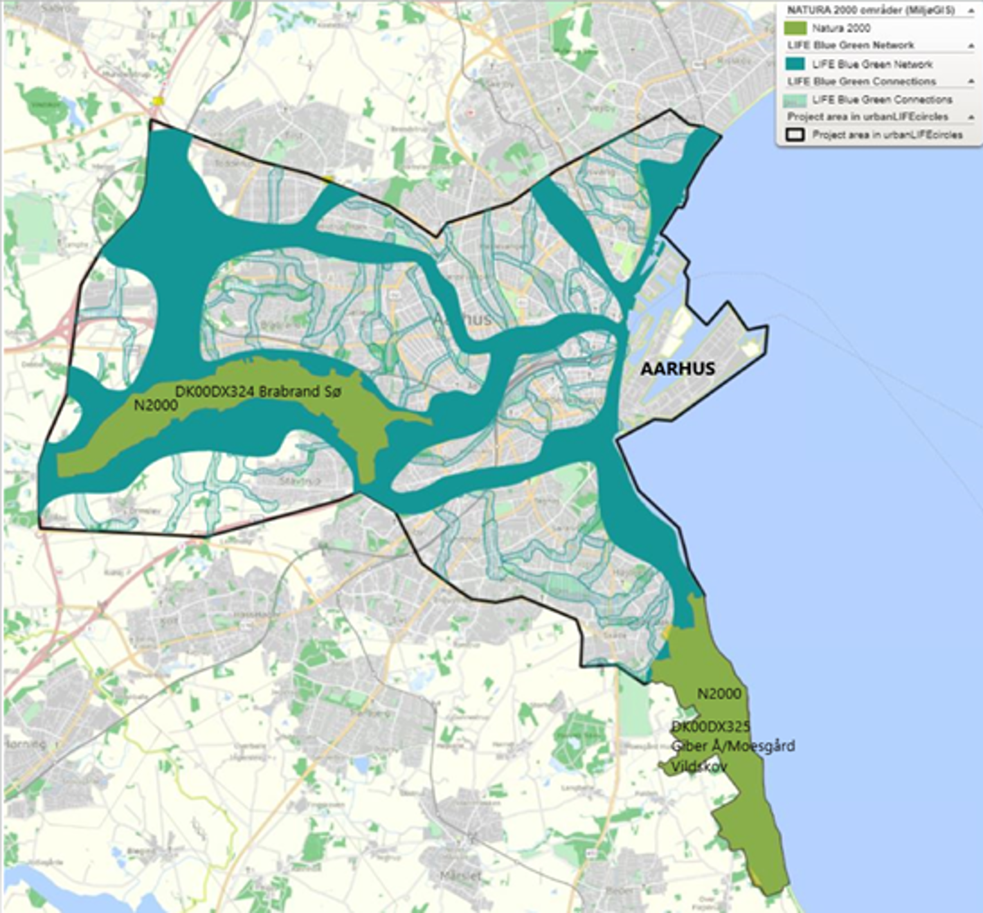 Oversigtskort over UrbanLIFEcircles i Aarhus Kommune