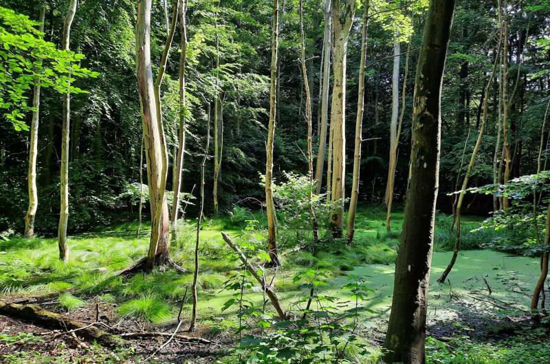 Mange steder er der heller ikke naturlige vådområder i skoven. Derfor kan det være nødvendigt at afbryde dræn og tildække grøfter for på den måde at holde vanden i skovbunden.