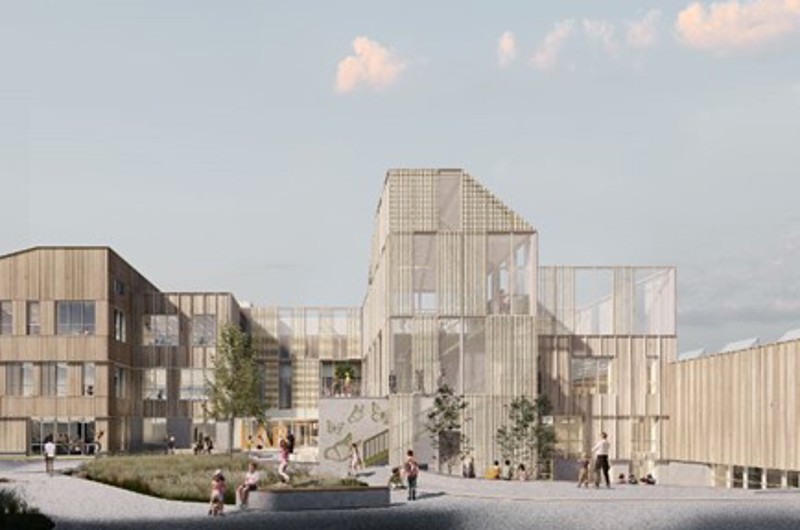 Aarhus Kommune (Børn og Unge og Kultur og Borgerservice) byder pressen velkommen til første spadestik for Ravnbakkeskolen og kunstgræsbanen i Nye d. 23. maj 2024.