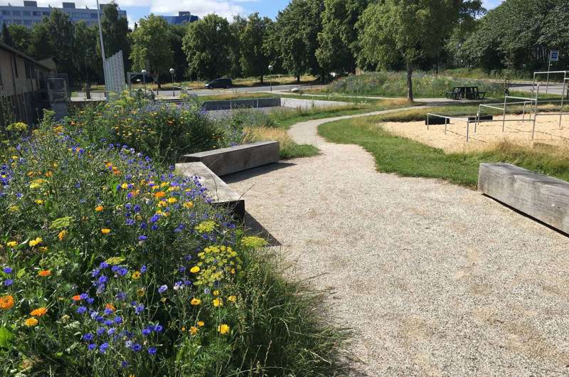 Frydenlundparken. Et navn, du lige så godt kan vænne dig til, hvis du bor i det vestlige Aarhus. I den nye, rekreative park kan de lokale beboere nyde fællesskabet, få jord under neglene i køkkenhaverne eller sved på panden på street basket-banen