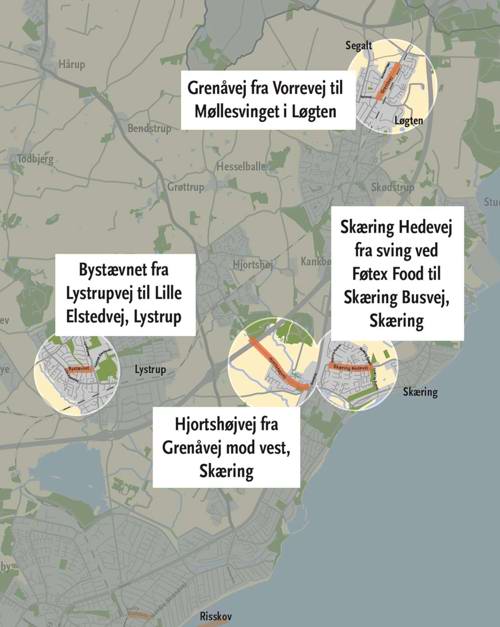 Teknik og Miljø i Aarhus Kommune er nu klar til at pege på de i alt 15 bystrækninger, der som et forsøg får en ny fartgrænse, der er ti kilometer i timen lavere end i dag. I løbet af foråret vil forvaltning udskifte farttavler på strækningerne, så det er tydeligt for bilisterne, at hastighedsgrænsen er sat ned.