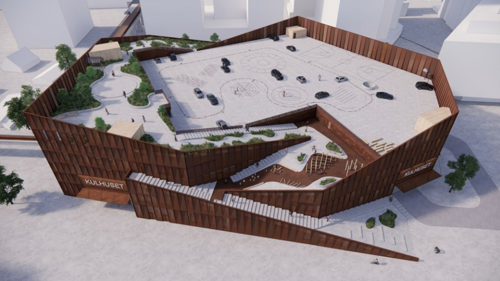 Parkeringshus med liv på taget på vej i Sydhavnen