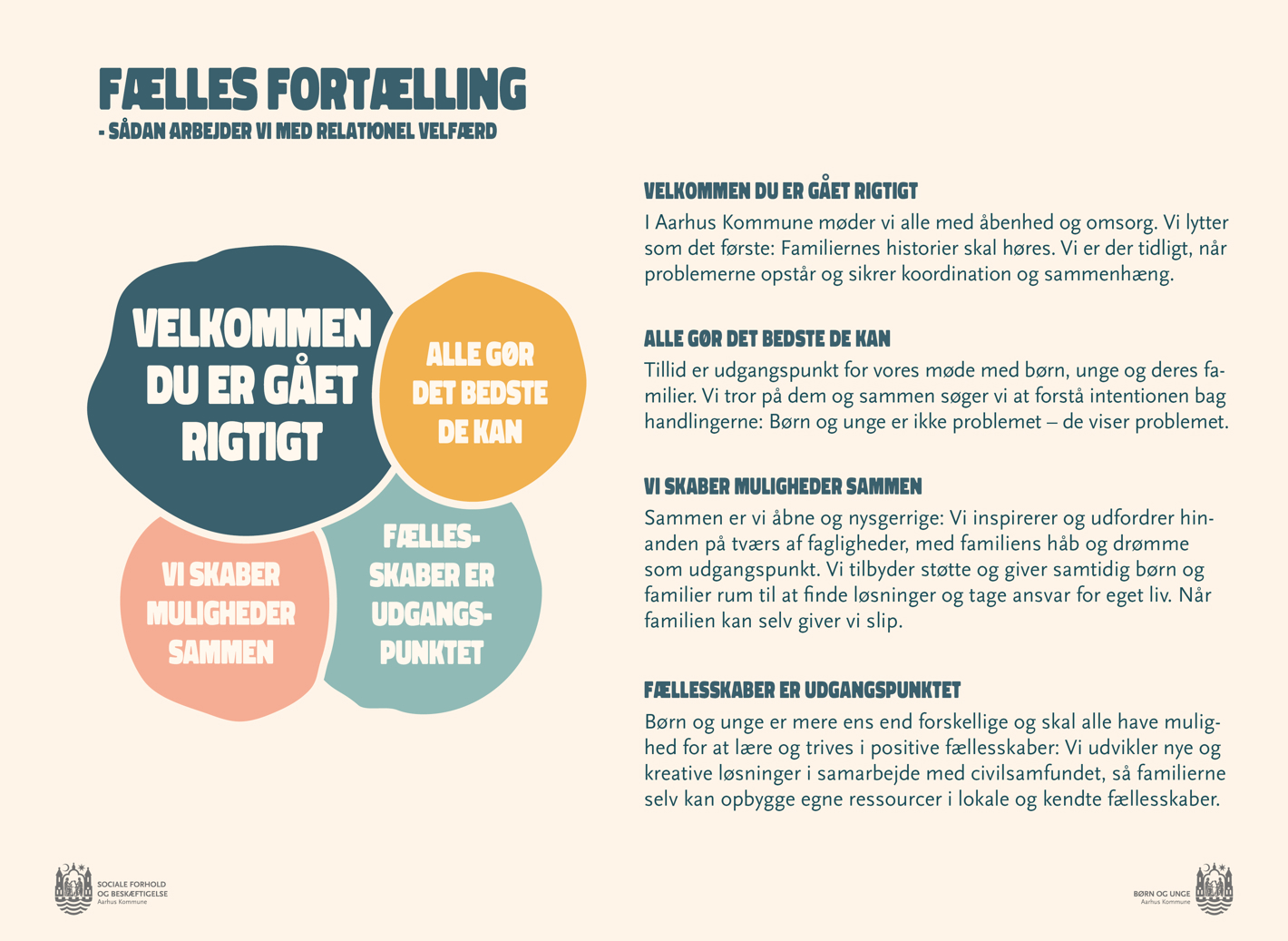 Med Relationel Velfærd arbejder vi for at skabe et godt børne- og ungeliv for alle børn og unge i Aarhus Kommune, med afsæt i det fælles børne- og ungesyn i Aarhus Kommunes nye Børne- og ungepolitik.