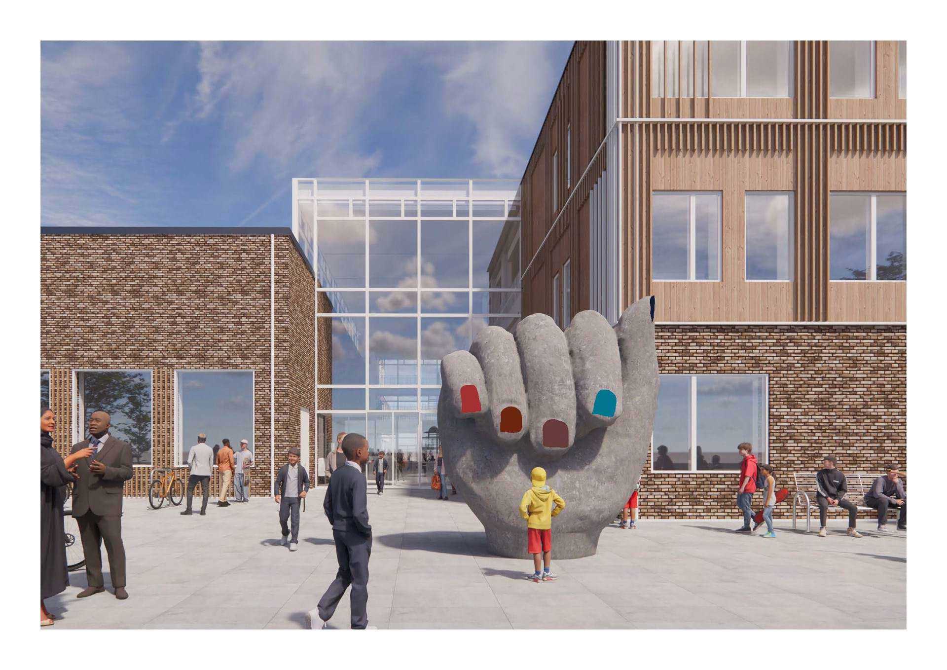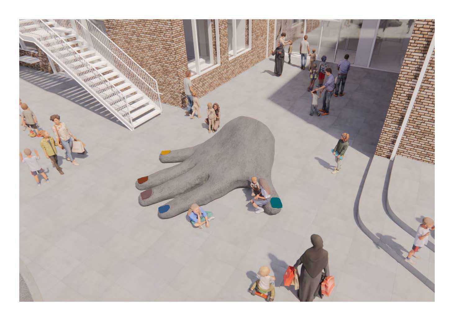 Udsmykningen vil indeholde tre elementer under fællestitlen og temaet Hænder.